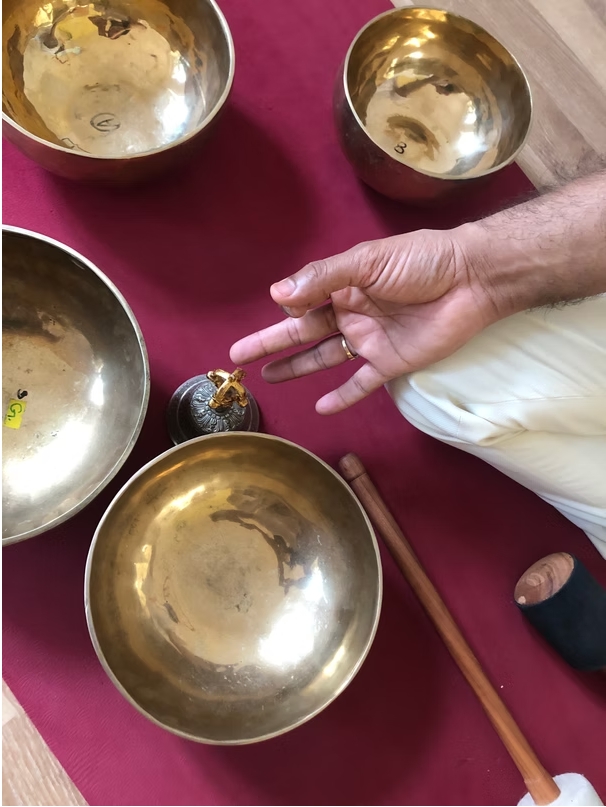 Tibetan singing bowls, along with other therapeutic instruments, which you will learn to combine for group meditations and individual healings.